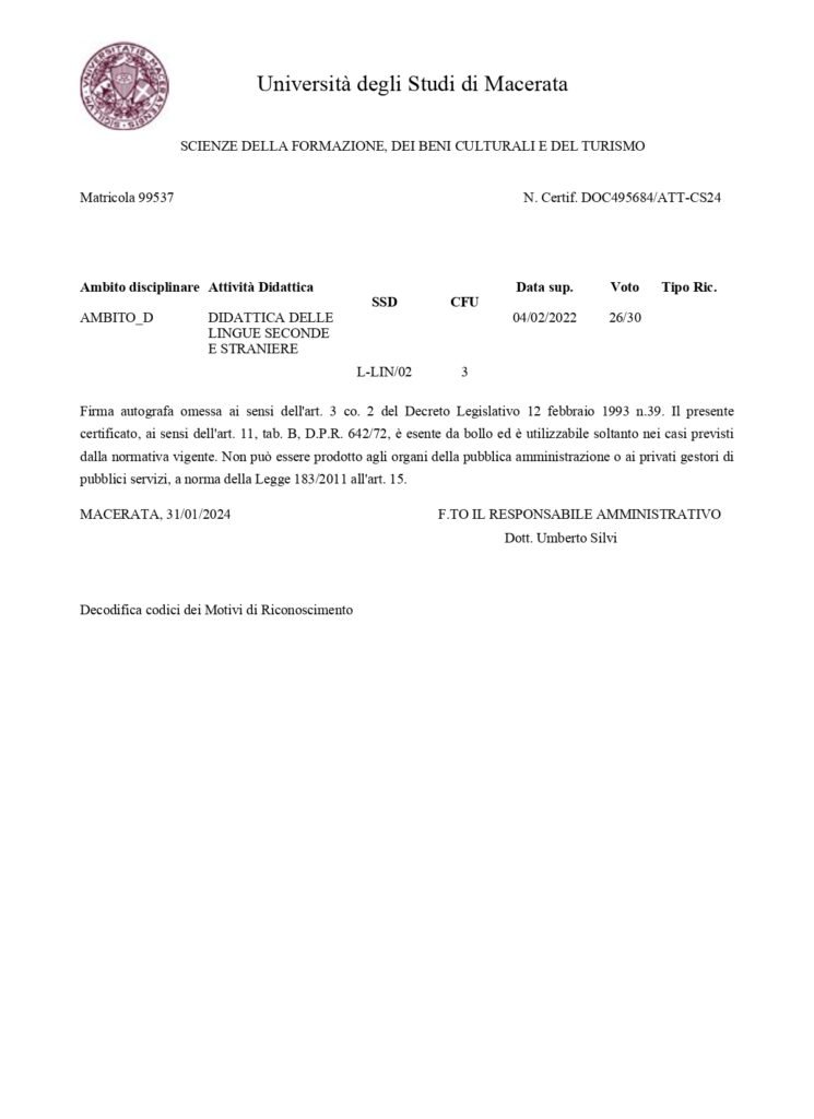 Sono una traduttrice giurata e offro traduzioni certificate e apostillate, garantendo accuratezza, affidabilità e conformità legale. Con una laurea in Mediazione Linguistica e un’esperienza in contesti internazionali e multiculturali, offro supporto a coloro che desiderano essere compresi e valorizzati sia a livello locale che globale.